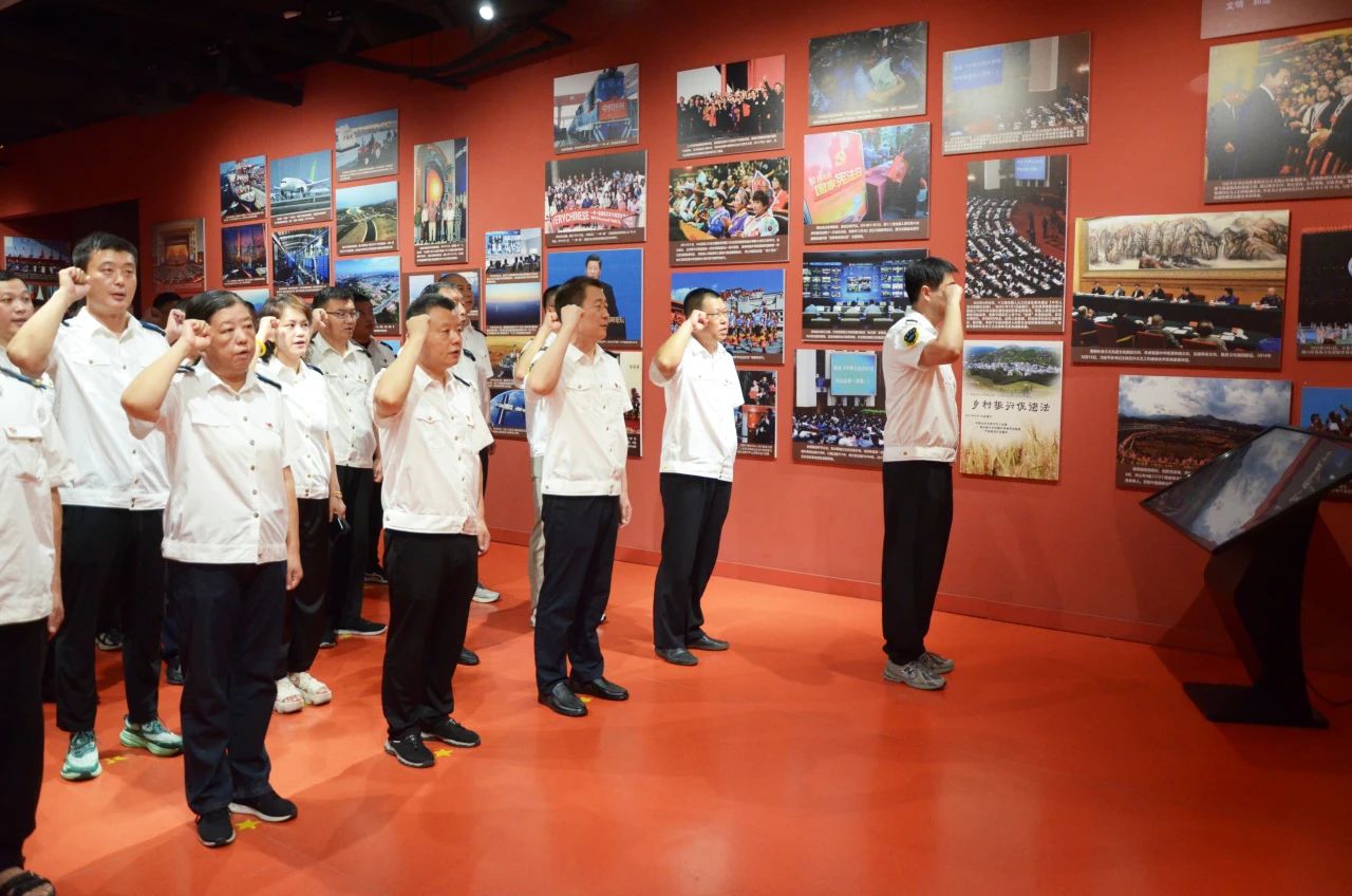 在宣誓廳,全體黨員面向鮮紅的黨旗,高舉右拳鄭重宣誓:“我志愿加入中國共產(chǎn)黨…… 隨時準(zhǔn)備為黨和人民犧牲一切,永不叛黨。” 鏗鏘有力的誓言在展廳內(nèi)回蕩,字字千鈞,既表達(dá)了對革命先烈的緬懷,更彰顯了全體黨員不忘初心、牢記使命,為共產(chǎn)主義事業(yè)奮斗終身的堅定信念。
